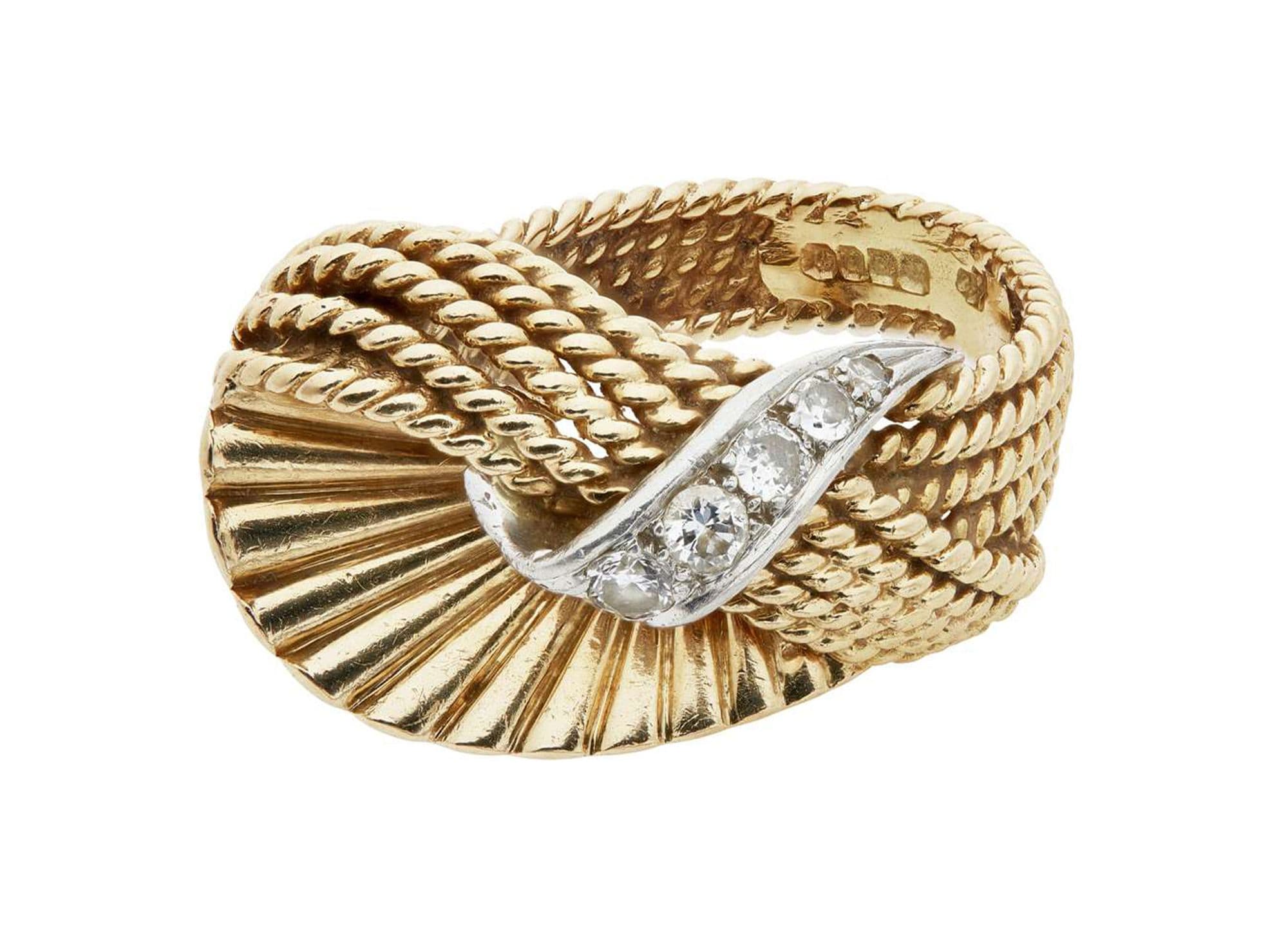 Known for their sculptural pieces richly set in yellow 18ct gold with diamonds and, at times, further embellished with colourful gems, Kutchinsky designs celebrated the return of luxury goods in the mid-1900s.