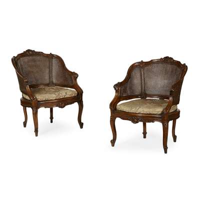 PAIR OF FRENCH WALNUT BERGERE ARMCHAIRS