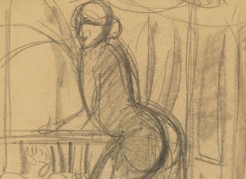 In this rare large-scale coloured drawing, the forms of trees are stylized further into repeating patterns of supple verticals, mounded canopies and fan-shaped ferns or shrubs, and the palette restricted to blue, yellow and green. The sheet was executed after World War One when Rice was based in London - she had married the British critic O. Raymond Drey in 1913. From early April to mid-July in 1918, she was working around Looe in Cornwall, where the artist, now pregnant, was joined by Katherine Mansfield and painted the writer’s portrait. Later in the summer, she moved on to Cromer and Wroxham on the Norfolk Broads. There were no funds for a studio during her challenging war and early post-war years. Rice did what she could during spring and summer trips, concentrating on small scale works on paper – drawings and watercolours – that could be made on the kitchen table, and often re-using motifs from earlier sketches.
