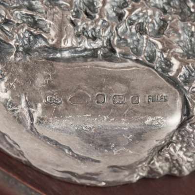 the naturalistically modelled standing Royal stag on a rocky and foliate base, further raised on a simple wooden base