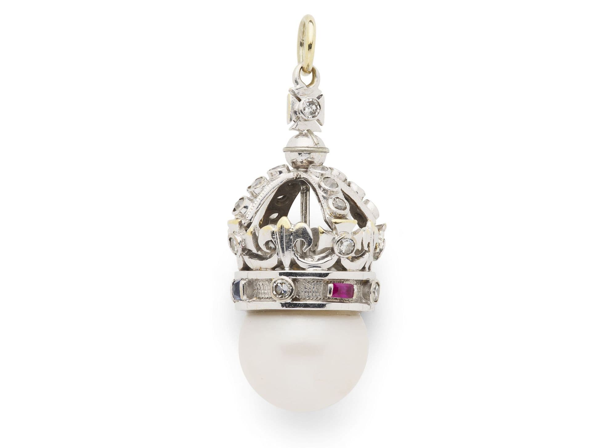 Building on the success of The Cairncross Collection and the landmark sale of The Abernethy Pearl for £93,951 (inc. premium) in 2024, the December auction will feature a carefully curated group of Scottish pearl jewellery. Leading the selection is a superb Scottish freshwater pearl pendant of rare scale and quality. Measuring just over 12mm, it exceeds the Abernethy Pearl in size and matches it in surface quality and lustre; unlike the Abernethy, it is subtly bouton in form and drilled for suspension beneath an exquisitely crafted 18ct gold multi-gem floral crown.