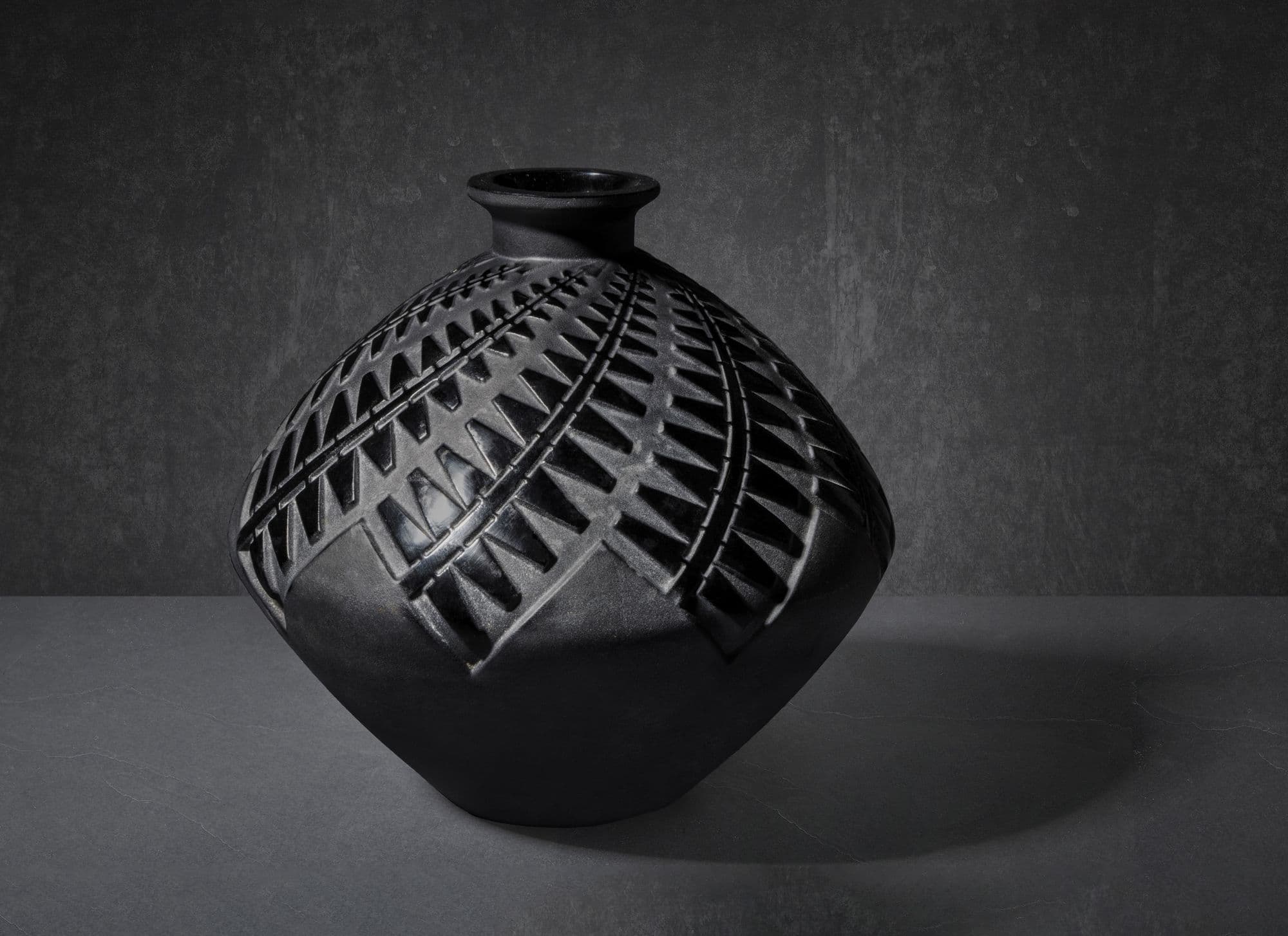 Like her father, Suzanne was inspired by nature. Stylistically her designs were Art Deco, employing geometric shapes and simplified forms, and drawing on the art of other cultures. Her husband Paul Haviland, who she married in 1917, had a collection of Aztec works from Mexico, and their influence can be seen in the Lagamar and Montargis vases (lots 79 and 80). Another family member had a collection of African artifacts, which likely influenced the design of the Grenade and Laiterons vases (lots 66-70).