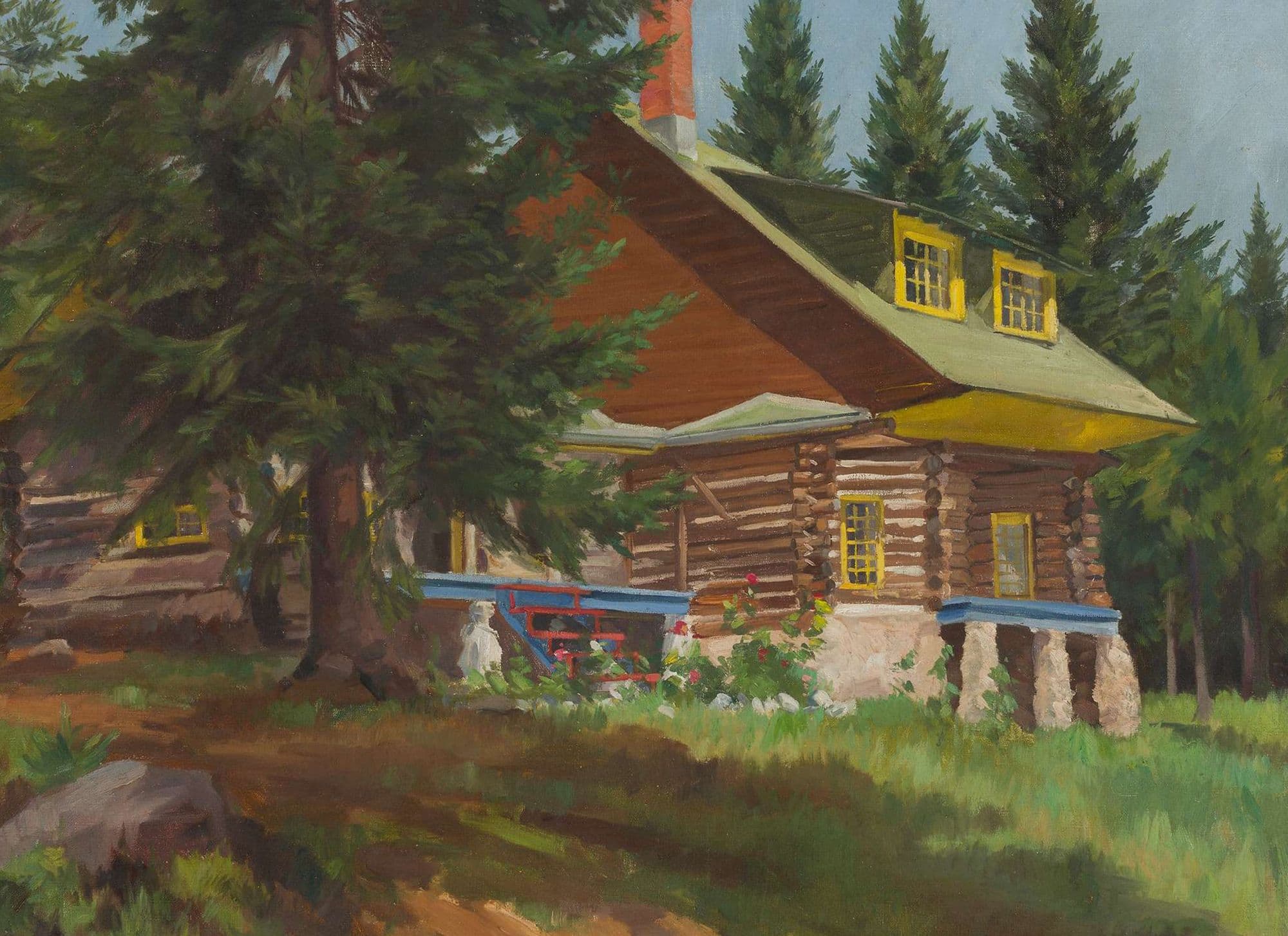 As with many artists of the period, the Second World War was to impact significantly on his style and his pre and post-war output are easily distinguishable. His war time activities took him close to front line action and McIntosh Patrick, who had previously found working from the studio suited his fastidious approach, took to sketching on the spot. His brushwork would loosen as a result and he would from then on choose to work en plein air. His style, though still retaining its trademark attention to detail, becomes more painterly and impressionistic from then on.
