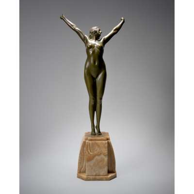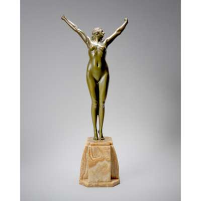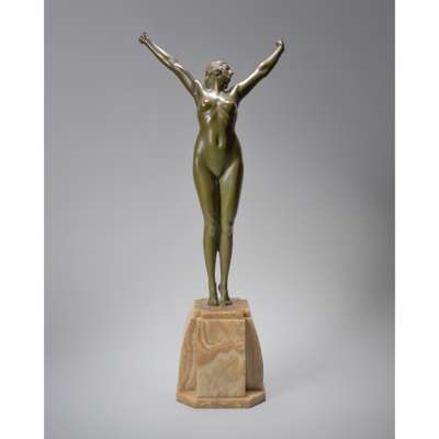 patinated bronze, onyx base