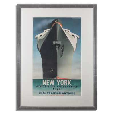 SS Normandie vs RMS Queen Mary was one of the greatest shipping rivalries of all time. The Normandie went into service in 1935 and made a record-breaking crossing of the Atlantic powered by turbo electric transmission. The distinctive bow was emphasised by Mouran in the publicity posters he was commissioned to design.