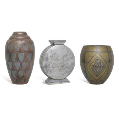 tallest stamped Christofle 123E, brass stamped Christofle B79E, white metal vase stamped Christofle 156D