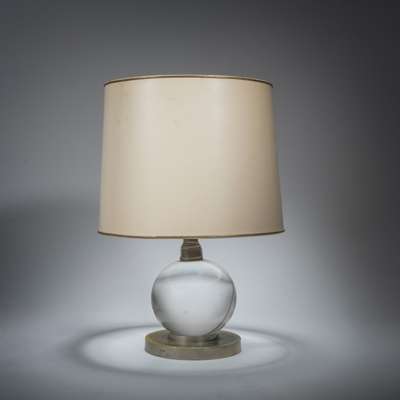 glass attributed to Baccarat, nickel-plated bronze stand, with later shade