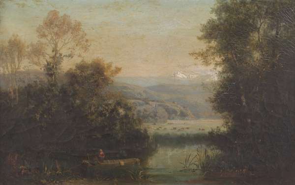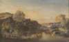A RIVER LANDSCAPE WITH FIGURES AND CATTLE WATERING