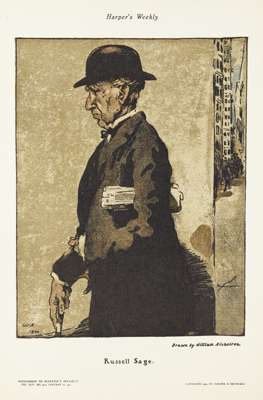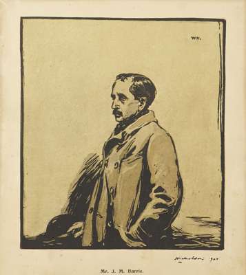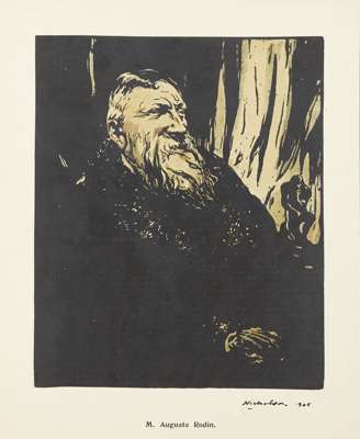 Colour lithograph, and a further three lithographs by the same hand: 'Russell Sage;' 'M. Auguste Rodin;' 'Mr. J.M. Barrie.'