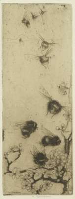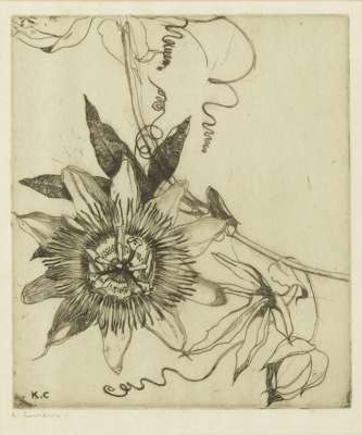 38.5cm x 14cm (15.25in x 5.25in), and two further flower study etchings by the same hand (3)