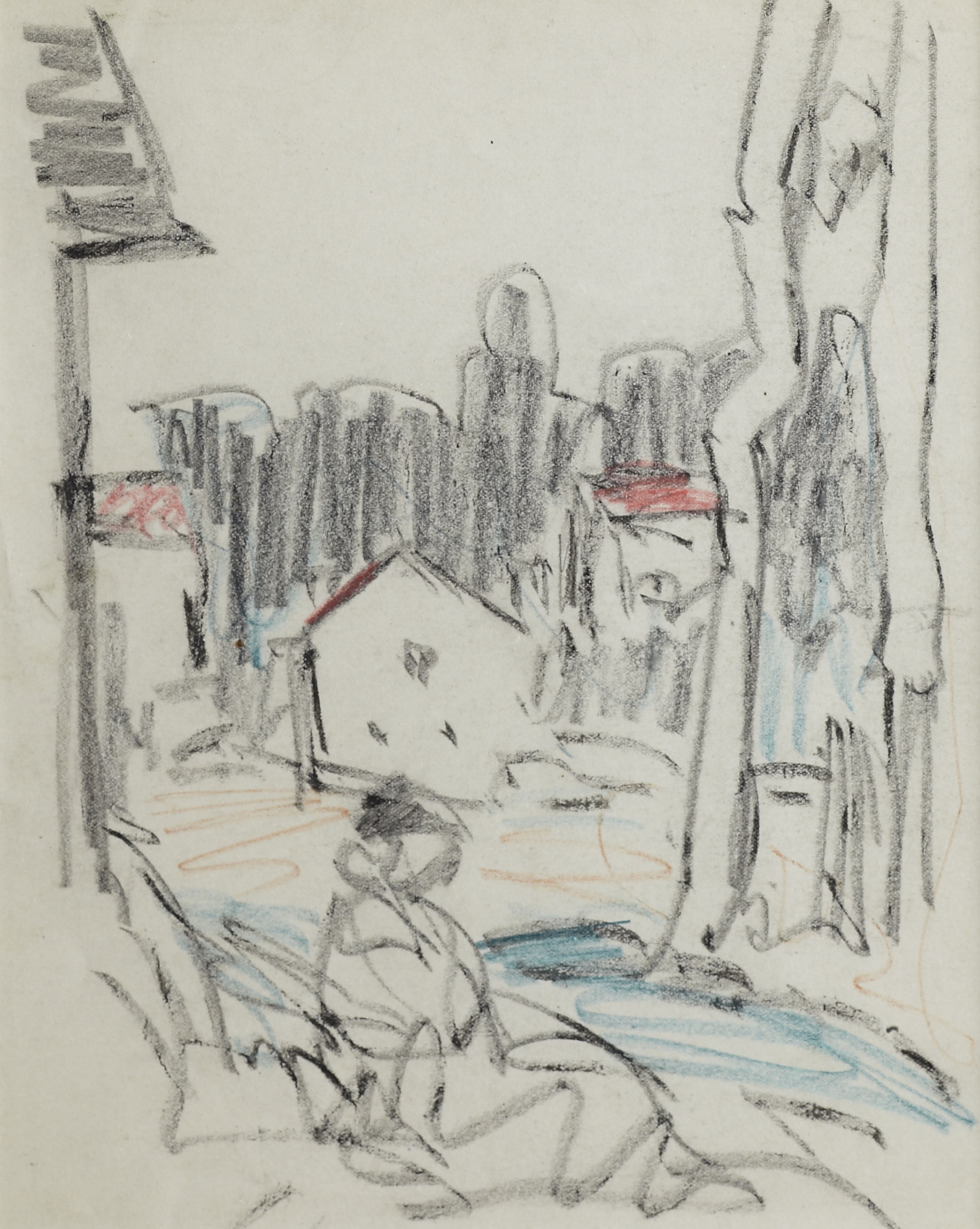 Charcoal and crayon