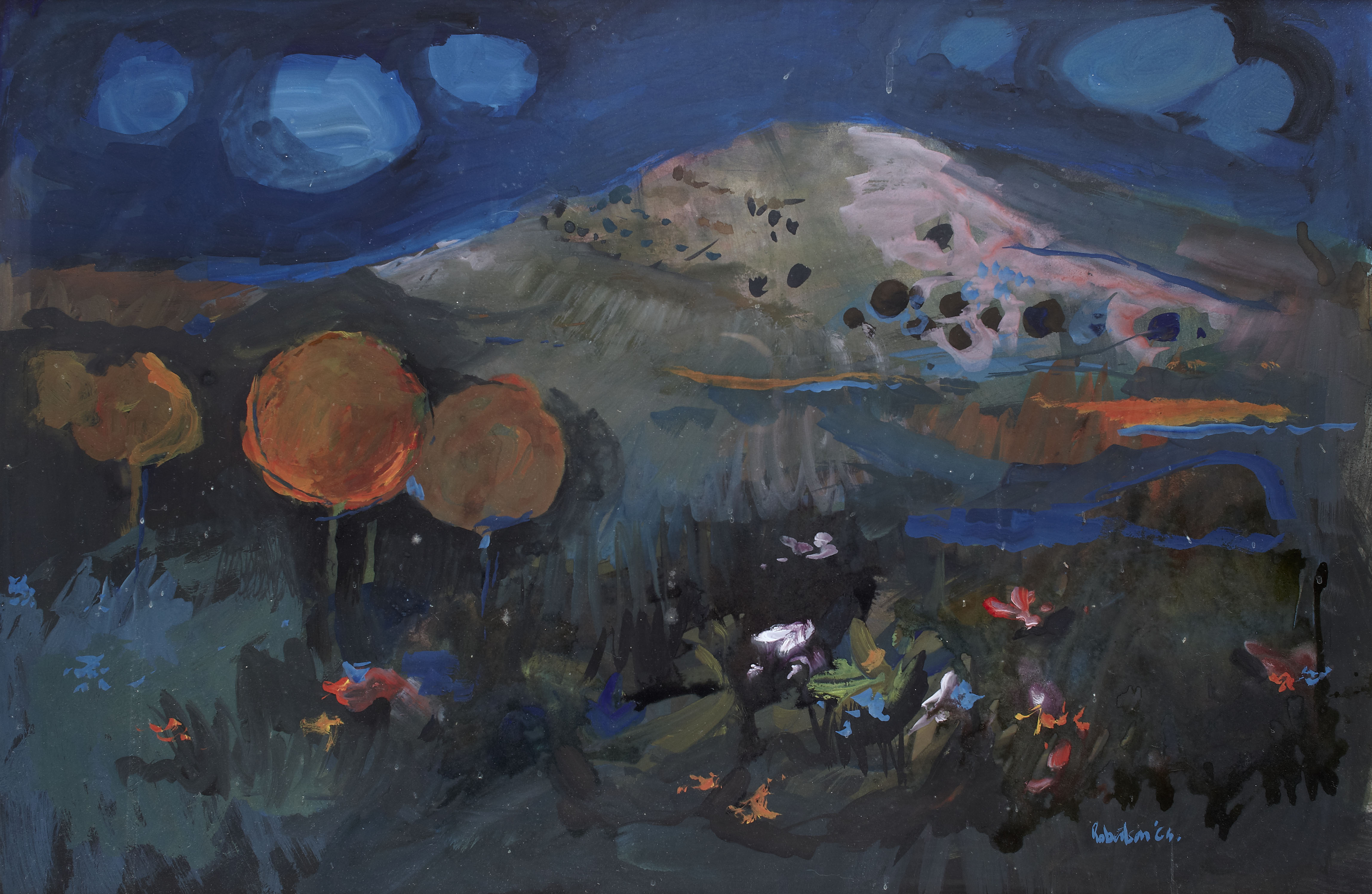 Signed and dated '64, signed label verso, gouache