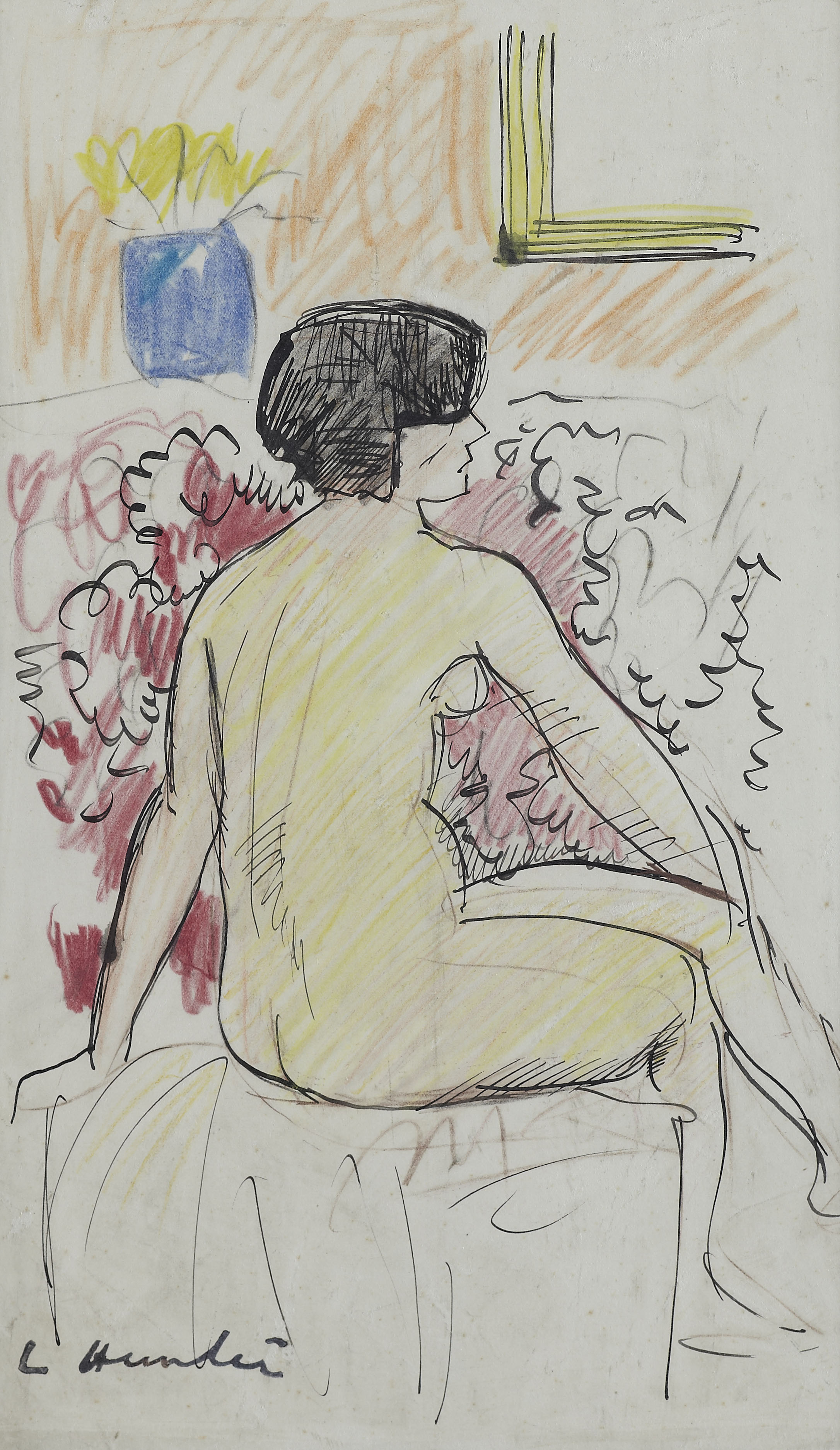 Signed, ink and crayon