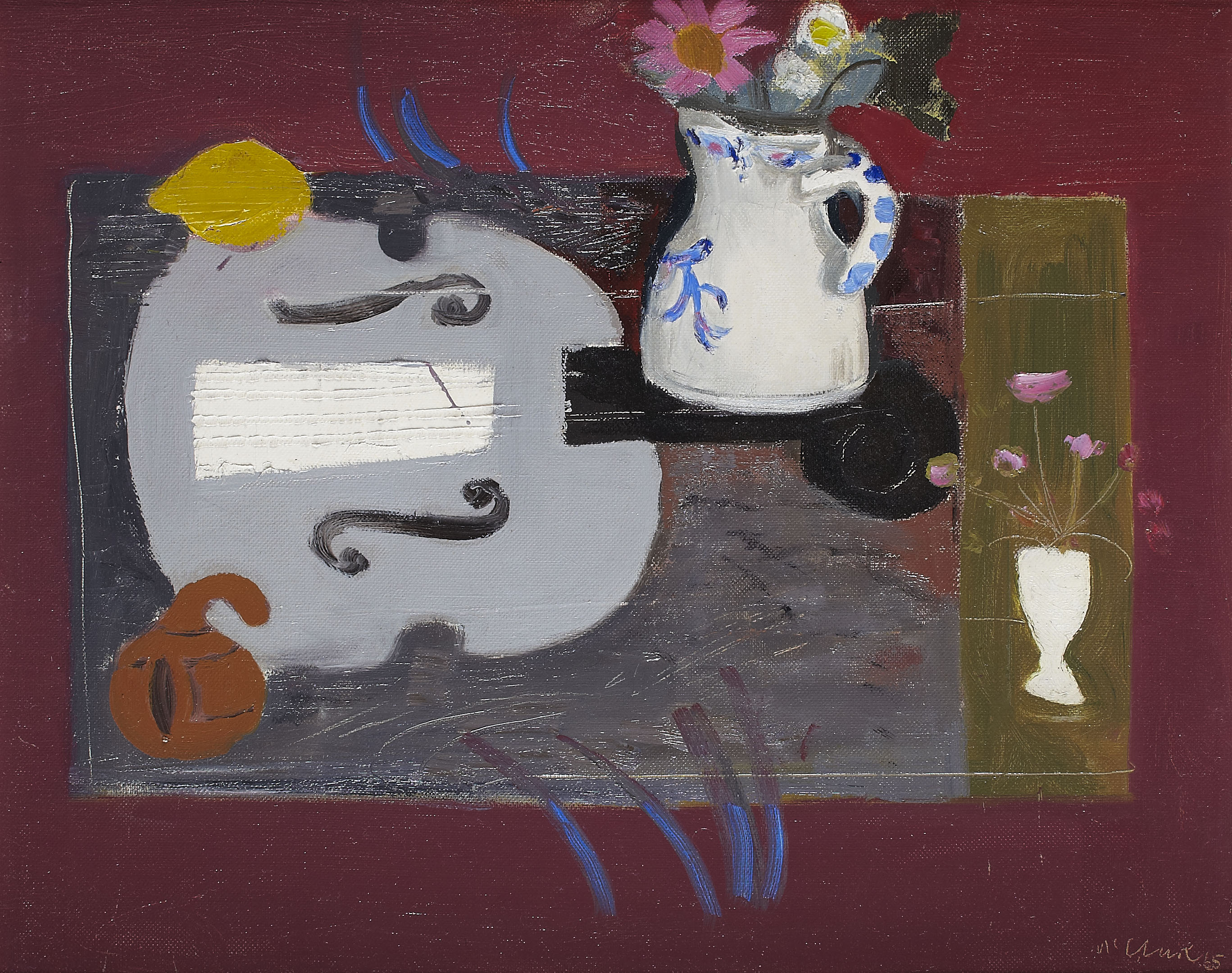 WHITE JUG, VIOLIN AND GOURD