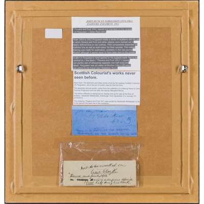 Note: The label verso which states 'not to be worked on lineblock....size of letterpress opposite (not half tone) lineblock' suggests this drawing may have been intended for publication, possibly in Rhythm, the art journal where Fergusson was art editor in Paris from 1911-1913.