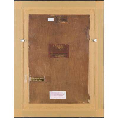 Signed and dated 1918, inscribed 'To Mrs Cook, 8th May 1919' on the backboard, coloured chalks on buff paper