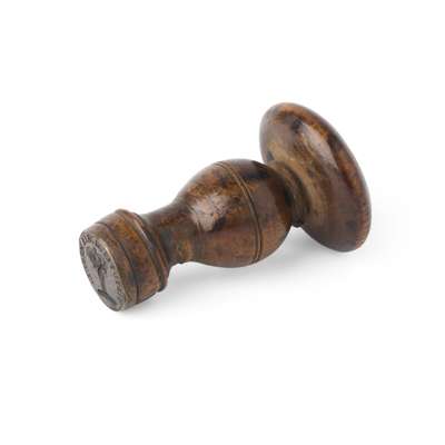 AN 18TH-CENTURY JACOBITE INTEREST WOODEN AND BRASS DESK SEAL