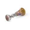 the facetted agate handle with domed terminal, to a silver mounted collar formed as a thistle to four arms, the oval-shaped, cairngorm citrine matrix engraved with the arms of the Scott family
