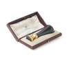 the facetted baluster bloodstone handle to a gold collar and mount, the bloodstone matrix intaglio carved with full armorial, in original fitted case inscribed to lid for Mortimer and Hunt