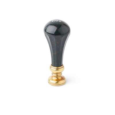 A FINE VICTORIAN BLOODSTONE AND GOLD DESK SEAL, CIRCA 1843