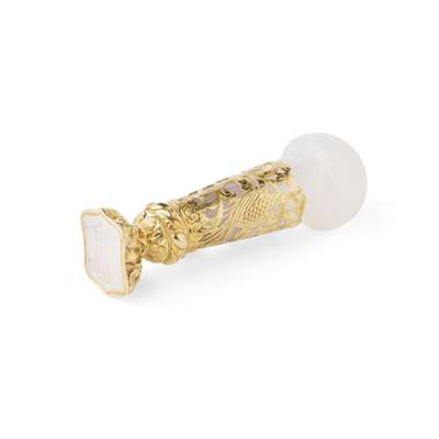 A VISCOUNT'S AGATE AND GOLD MOUNTED DESK SEAL, CIRCA 1840s