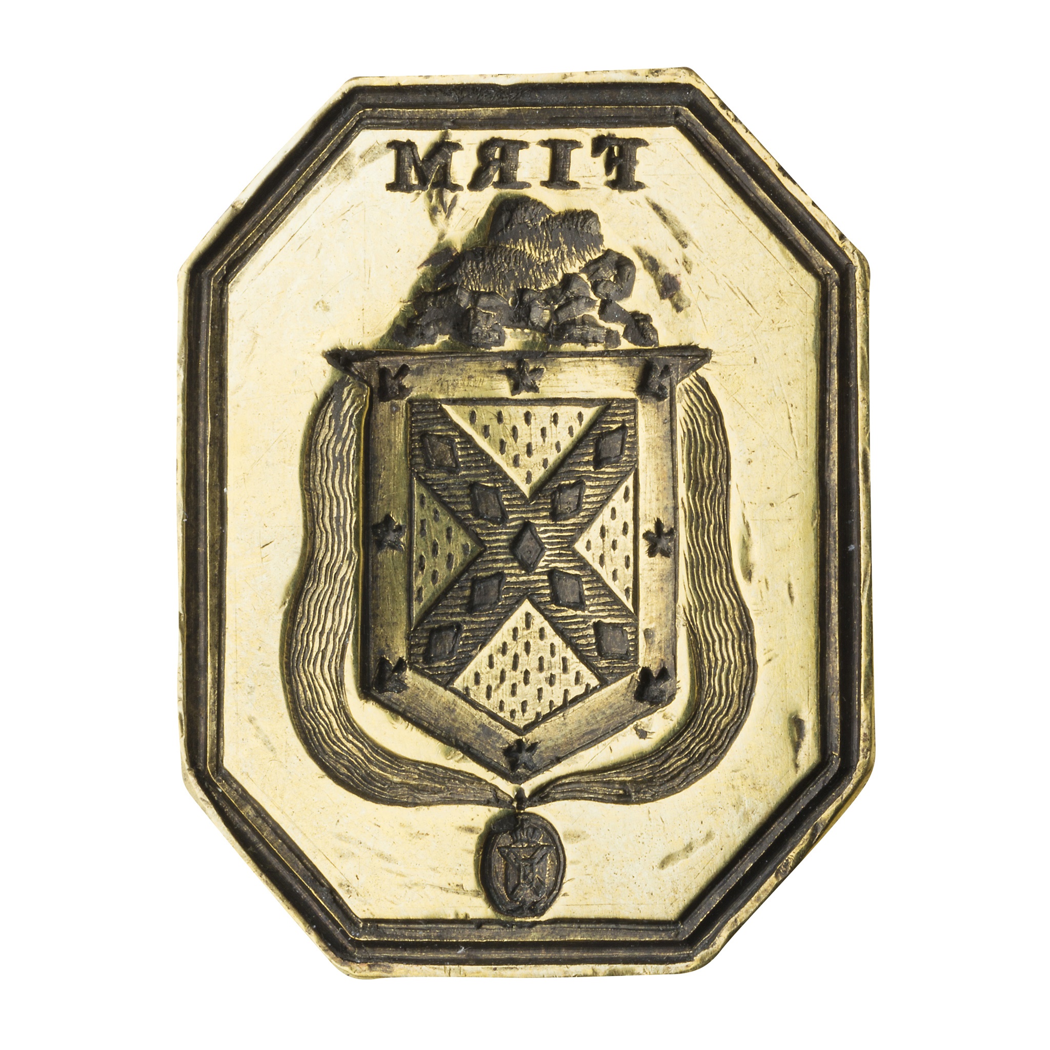 AN EARLY 19TH-CENTURY HARDWOOD AND BRASS SEAL