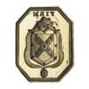 Arms: Or on a saltire azure nine lozenges of the field a bordure of the second charged with four boars' head coupled alternating with a like number of mullets of the field
