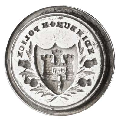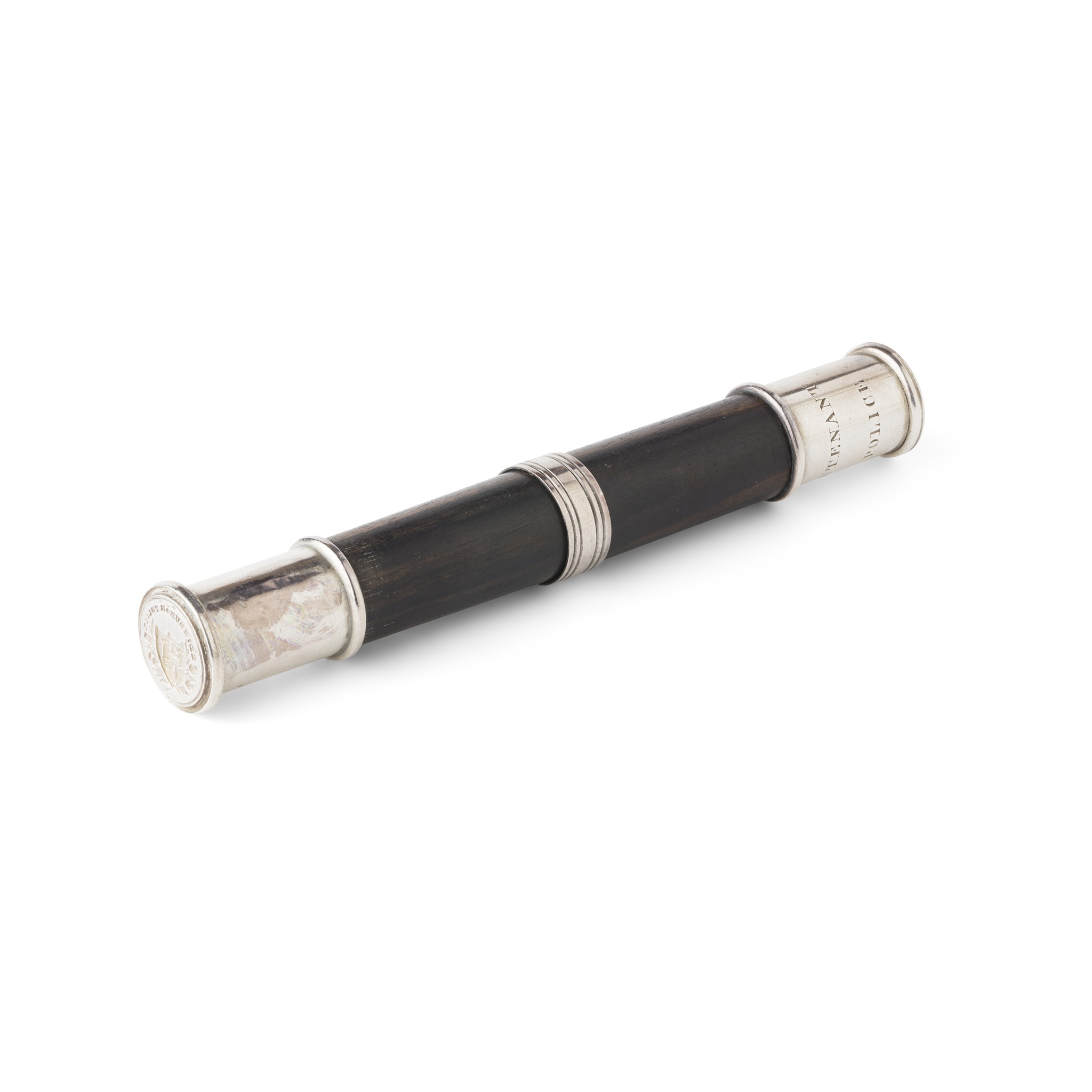 AN EARLY VICTORIAN EDINBURGH POLICE COMBINATION SILVER MOUNTED TIPSTAFF AND SEAL, CIRCA 1840