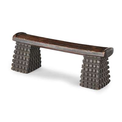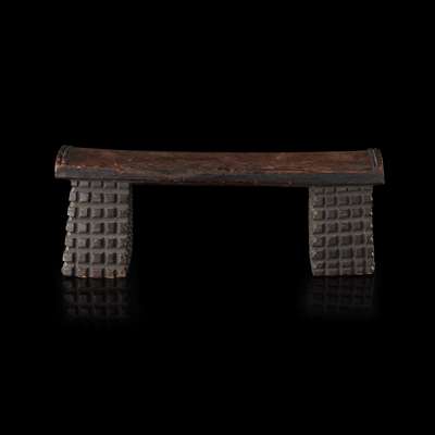 carved wood, sitting on two amasumpa carved supports, dark brown patina