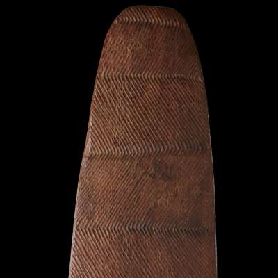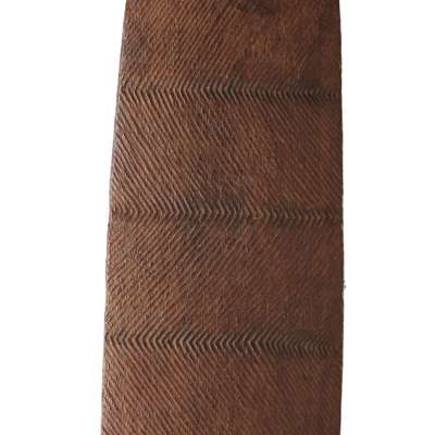 wood, the front decorated with stone carved zig-zag pattern and the reverse with an integral handle, mounted