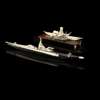 marine ivory, carved in multiple seperate pieces, the first with a wooden base and soapstone seal attached, the second shown seated in a leather bound kayak