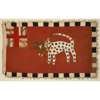 cotton applique flag, a spotted leopard is shown carrying a hunter in its mouth, red background with Union Jack in top left and a black and white checked border