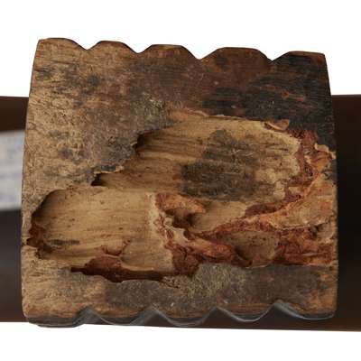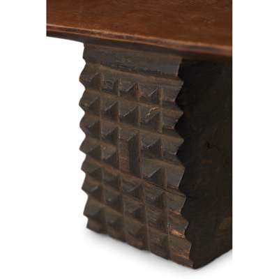 wood and pokerwork, standing on three block supports decorated with amasumpa decoration