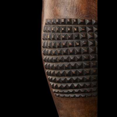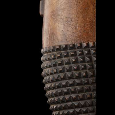 carved wood, with dual lug handles and amasumpa decoration on either side