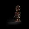 wood, leather, kaolin, hair and rattan, sitting on a woven base, the figure composed of wood covered with antelope hide, the legs and arms articulated, open mouth showing teeth coloured white with kaolin, the eyes also covered in kaolin, hair applied to the top of the head