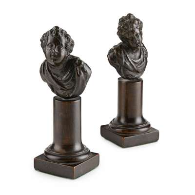 TWO ROMAN BRONZE BUSTS OF ARTEMIS AND ACTAEON