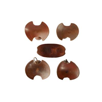 carved wood and leather strapping, a fine collection including four Kaara neckrests and one Turkana example, all with a warm patina and clear signs of age and use
