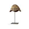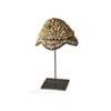 fabric, cowrie shell and beadwork, of conical shape, covered in cowrie shells with beadwork at the base, mounted