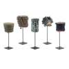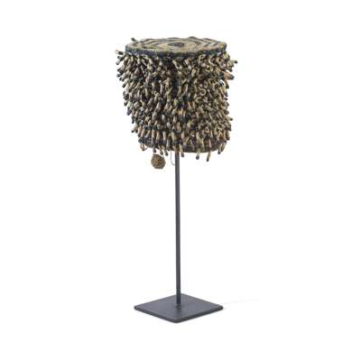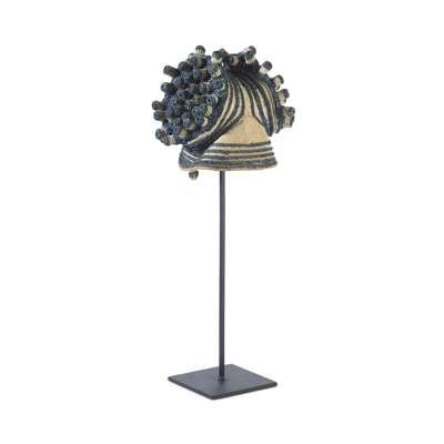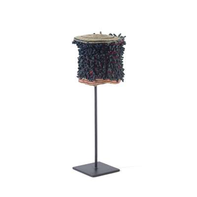 woven cotton, of various construction, with burls and dyed in indigo and red, raised on bespoke mounts (5)