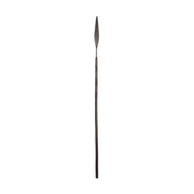 wood, copper binding, iron blade, with a makers mark halfway up the wooden shaft, the central rib of the blade decorated with small incised crosses and the base of the shaft with a series of kill notches