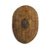 woven cane fibre with wooden boss and pegs, the reverse with integral handle