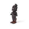 carved wood and bone, shown standing with a child clinging to the head, scarifications to the chest