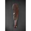 carved wood, with a full-figure tiki on the blade and tiki head on the base of the handle