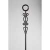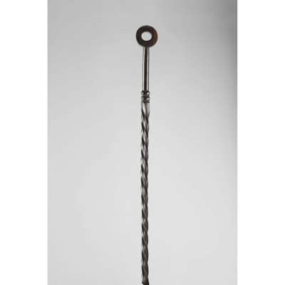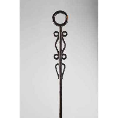 carved wood, the first with two raised ribs below a long section of barley-twist above two further ribs and a circular terminal, the second with two barrel-like projections each with four ribs, the third with a rounded loop terminal and decorative elements running along the outside of the shaft