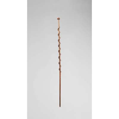 carved wood, with a serpent coiling up the shaft, the eyes recessed and possibly once inset with glass beads, with a small bulb terminal