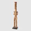 carved wood, shown standing, the knees slightly bent, the hands held up towards the chest, palms turned upwards, the shoulders broad, leading to a strong neck and face with powerful features, incised coif, raised on a bespoke mount