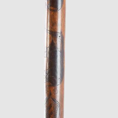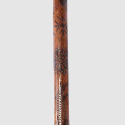 This remarkable staff belonged to the famed Scottish explorer James Augustus Grant. Born in Nairn in 1827, Grant joined the army at the age of 19, serving primarily in India. He saw service in the Sikh War of 1848 and was wounded during the Indian Mutiny in 1857, returning to Scotland the following year.