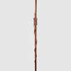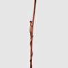 "The prevalence of snake iconography on staffs is linked to the perceptions of many southern Africans of these reptiles as beings whose ability to move from below the ground into the land of the living is a sign of their communication with the spirit realm. The appearance of snakes in the homestead is most often taken as denoting the visit of an ancestor or other spirit to the living. Most southern African peoples made, and still make, distinctions between the harmless non-poisonous snakes and the malevolent poisonous species. So pythons which are very large but not poisonous, although still dangerous, are associated with legitimate power and with healing, while cobras, which are feared by all those who have to move over open bush or thicketed areas, are also associated with power, particularly the ability to strike ones enemies via covert means. In this staff there is a particularly disconcerting end to the snake; curving up the stem of the pipe it appears to merge with the figure carved at the centre of the staff's length. This figure has no feet, having visibly flowed out of the same matrix as the stem of the staff, and the snake, curling up behind this essentially genderless form, provides it with a neck and head that are essentially a hybrid of snake and human features. It is likely that such an extraordinary and striking image was made on commission for a healer or diviner, most likely by a Tsonga carver, and that it would've been used in the context of healing or divination." Klopper, Nettleton and Pethica, 2007/