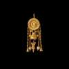 gold and glass, formed of a central rosette decorated with elaborate filigree work, the centre with a series of petals, the central drop with clusters of gold granules and further intricately woven wire, below hang four gold chains, two with glass beads and two with blossoming lotus flowers