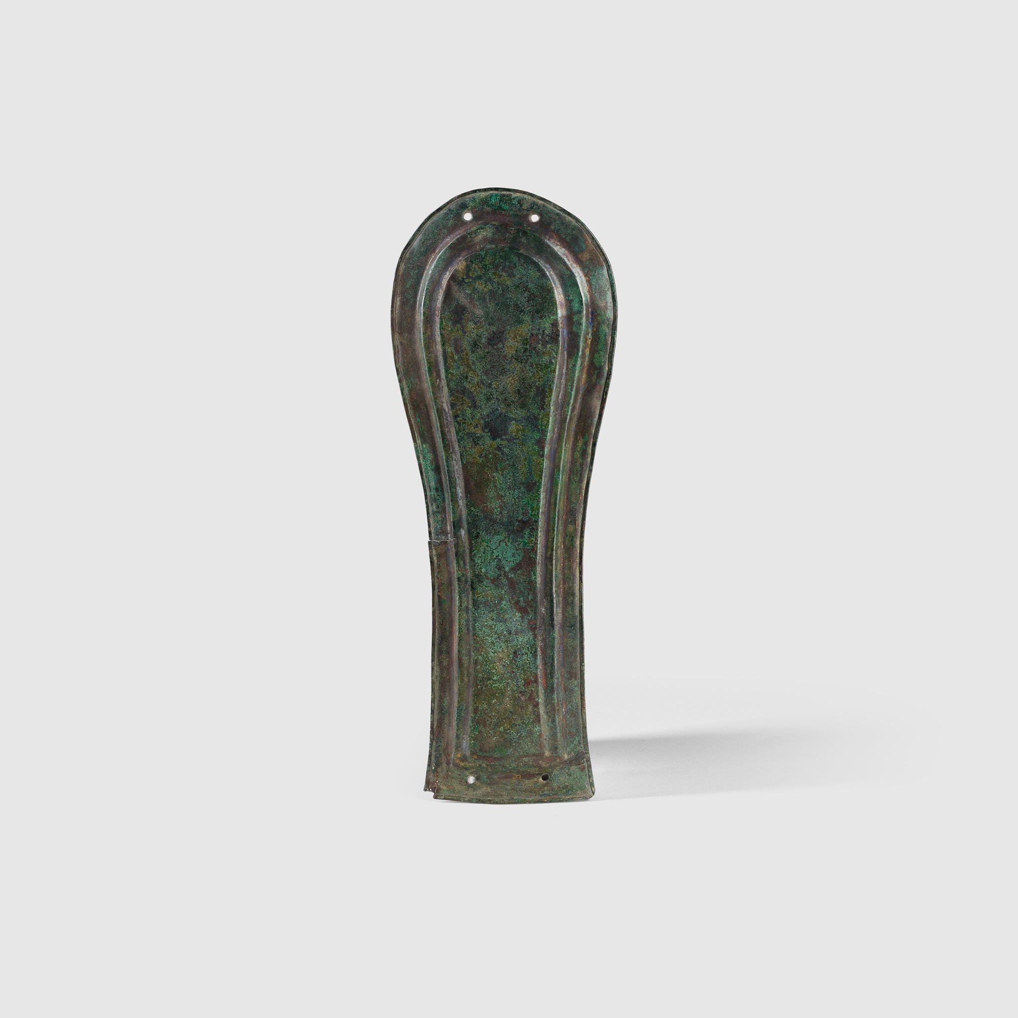 hammered sheet bronze, shaped in the form of a horses muzzle with a series of raised planes